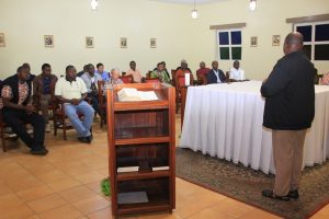 « Jésus s’en alla dans la montagne pour prier, et il passe toute la nuit à prier Dieu » (Lc 6, 12). Revenant sur ce verset de l’Evangile du jour, fête des Saints Simon et Jude, Apôtres, le Père Provincial, dans son homélie, a rappelé que les directeurs sont invités, à l’exemple de Jésus, d’être des hommes, des maîtres et des modèles de prière dans leurs communautés respectives. C’est à 09h15 que le vicaire provincial, le Père Frédéric MURINDANGABO a introduit la prière d’invocation à l’Esprit Saint avant de passer la parole au Provincial pour, encore une fois, saluer les participants et donner une brève présentation de la situation actuelle de chacune des communautés.